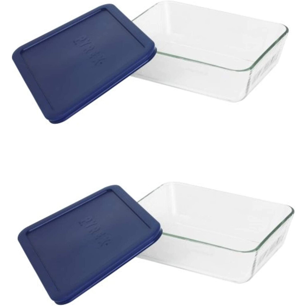 Pyrex Simply Store 6-Cup Rectangular Glass Food Storage Dish,Blue (2 Pack) Made in the USA
