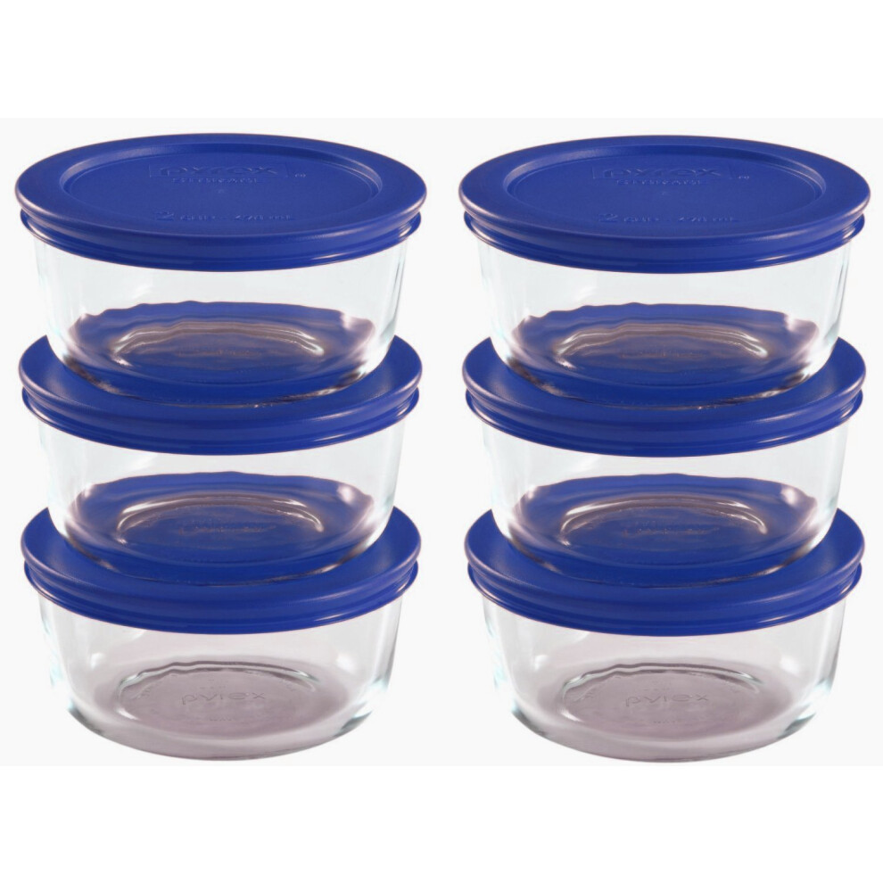 Pyrex Storage 1 Cup Round Dish Clear with Blue Lid Pack of 6 Containers