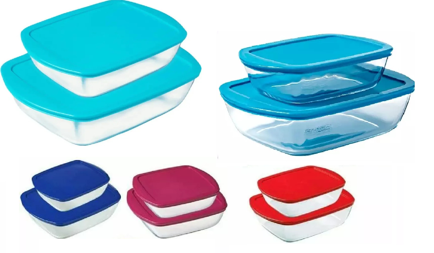 Pyrex Rectangular Storage Glass Dish with Lid Set of 2 Pieces 1.5L + 4L