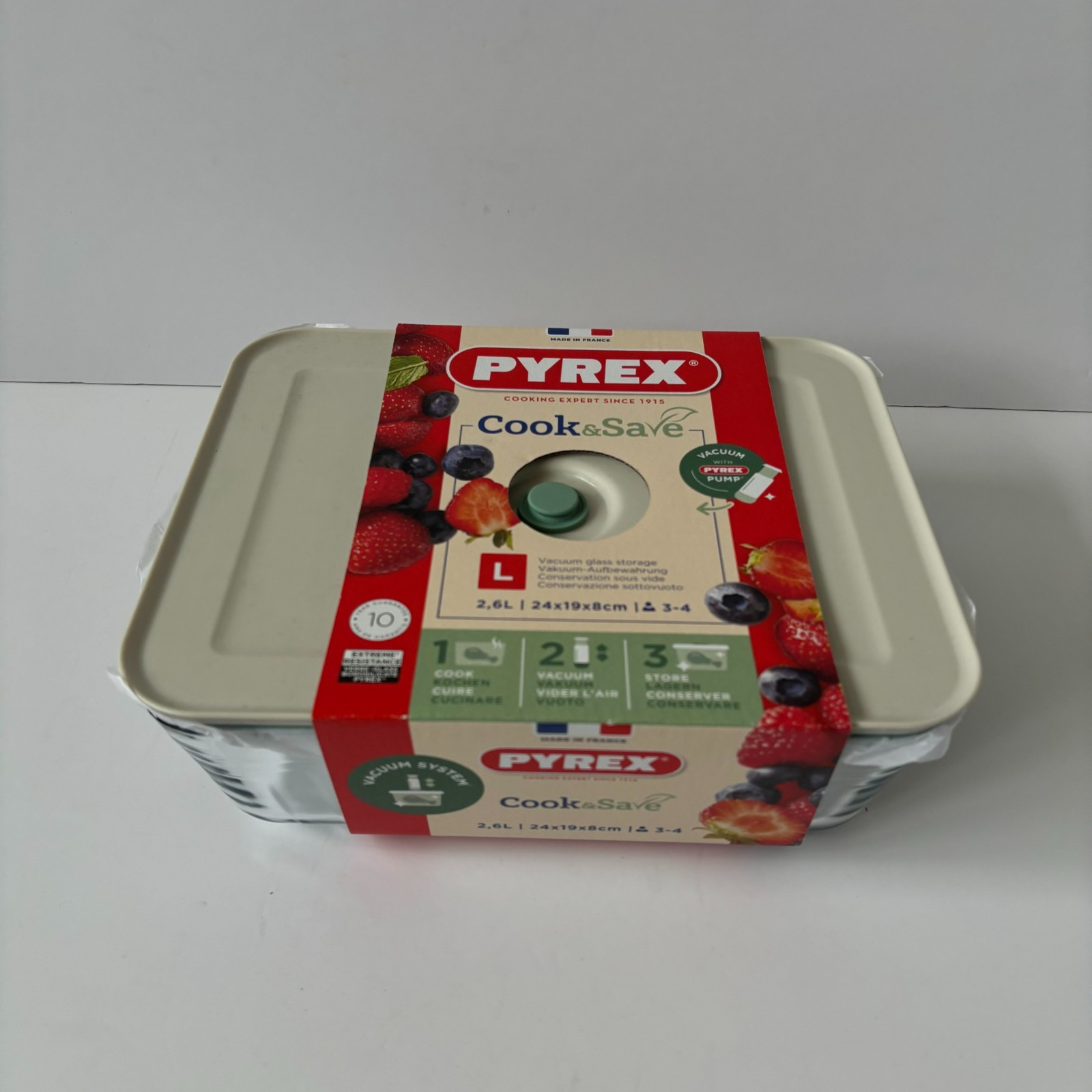 Pyrex 2.6L Vacuum Seal Glass Dish Container & Lid Keeps Food Fresh Leakproof NEW