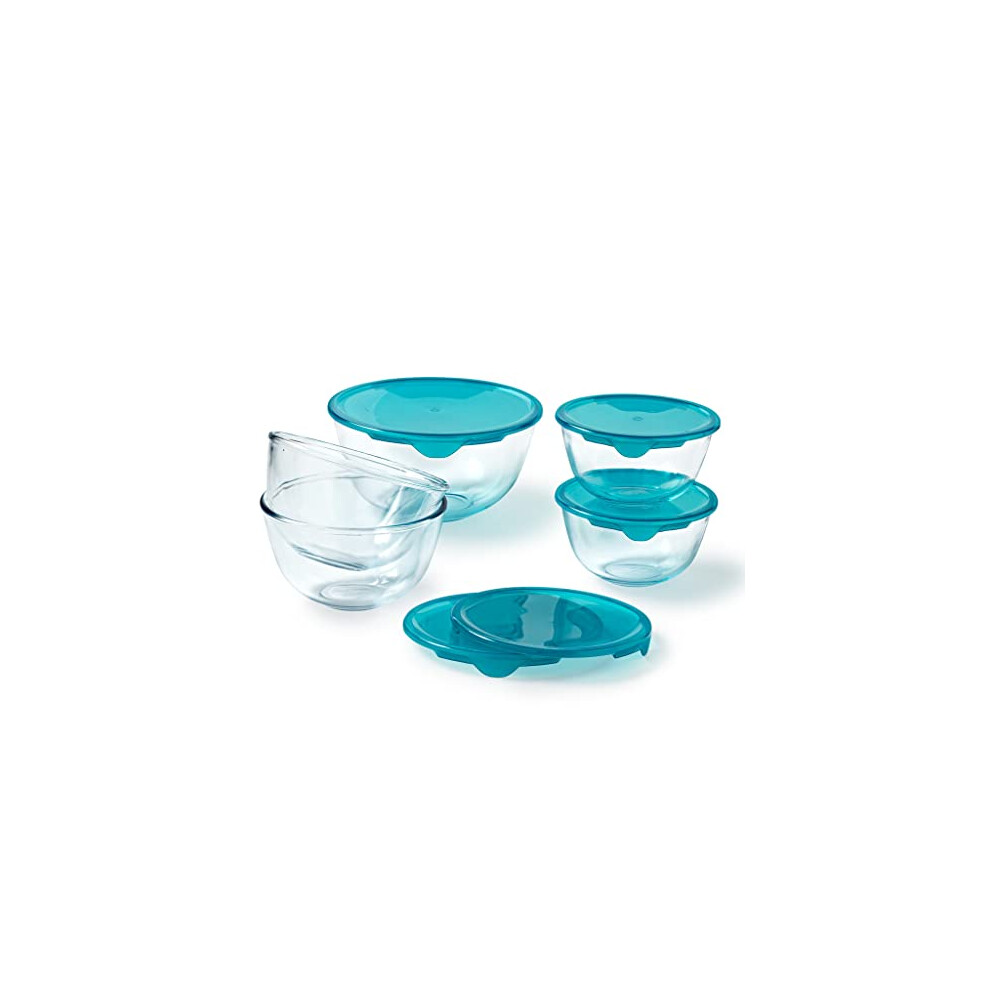 pyrex 100+ Years Glass Mixing Bowls 8-Piece Improved (Limited Edition) - Assorted Colors Lid - Colors May Vary