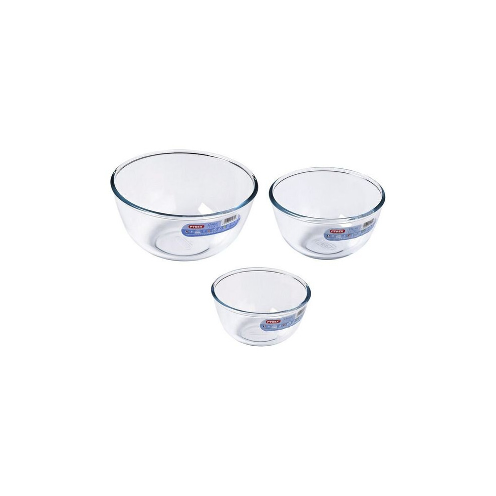 Pyrex â 8023509 â 3 Pieces; Glass Mixing Bowls/Salad Bowl â 0.5 L; 1 L; 2 L â Borosilicate Glass â Heavy Duty â Made in France