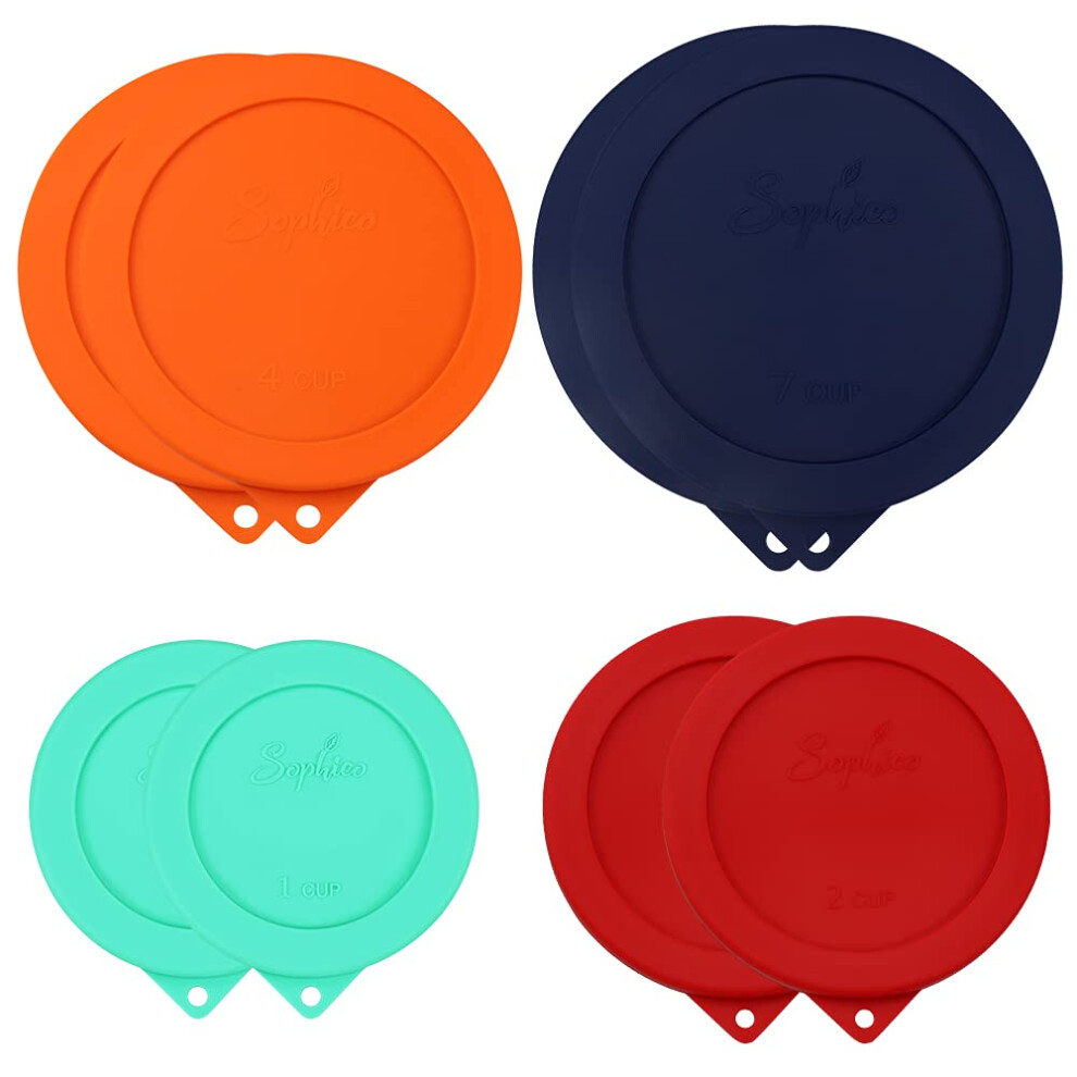 Sophico Round Silicone Storage cover Lids Replacement for Anchor Hocking and Pyrex glass Bowls container not Included 4 Size 8 Pack