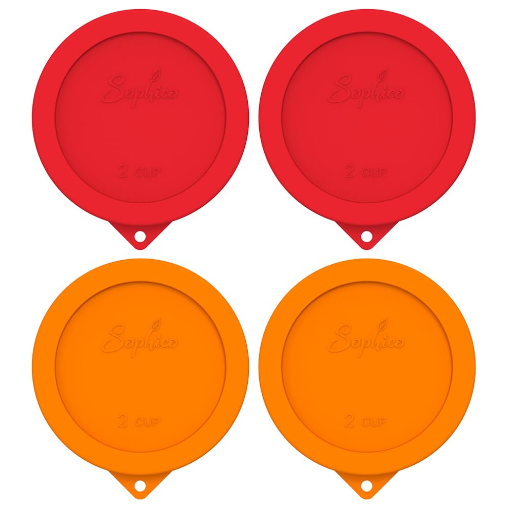 Sophico 2 Cup Round Silicone Storage Cover Lids Replacement for Anchor Hocking and Pyrex 7200-PC Glass Bowls (Container not Included) | Red-Orange | 4