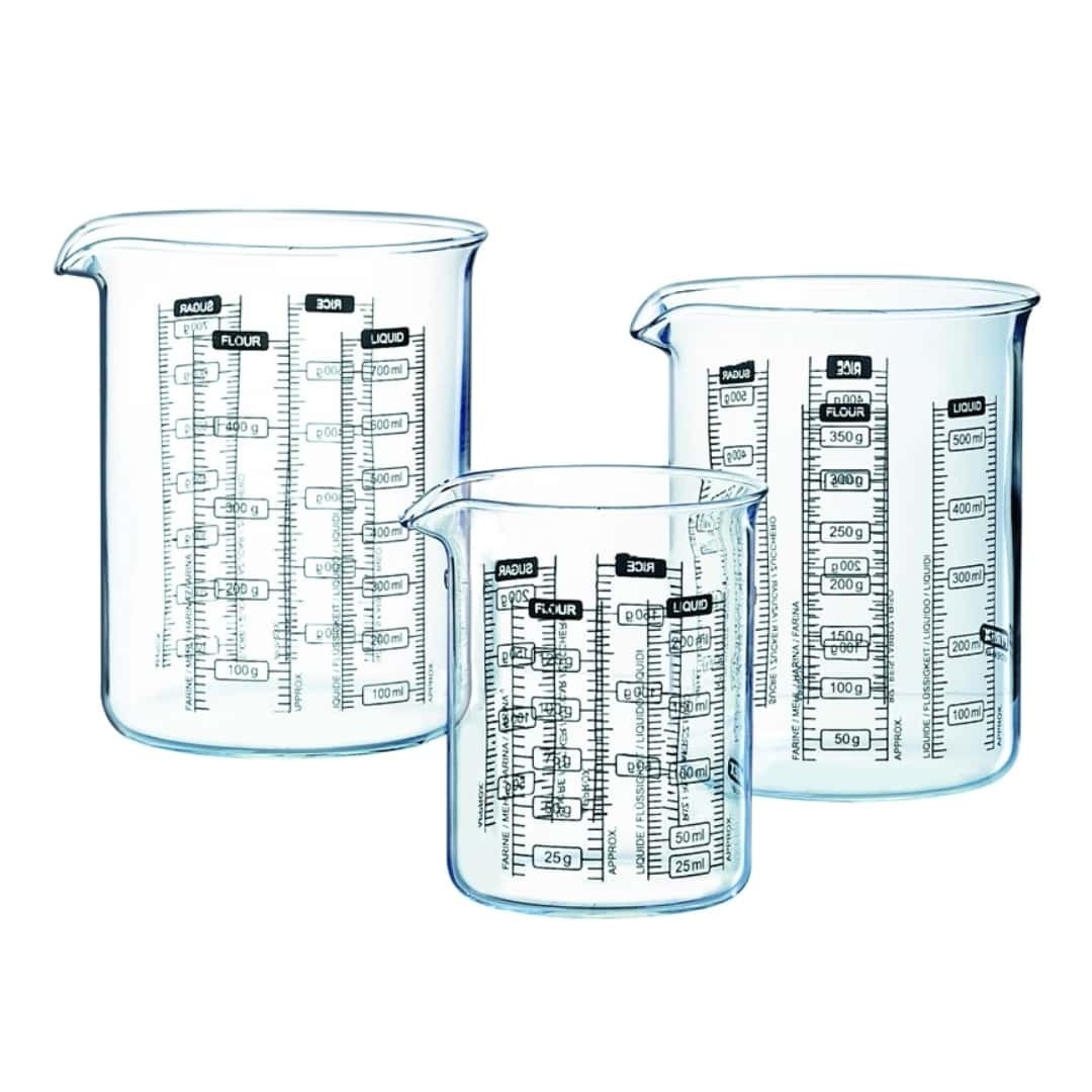 3 Pyrex Glass Measuring Jug Set 0.25L 0.5L & 1L Classic Kitchen Measurement Jug