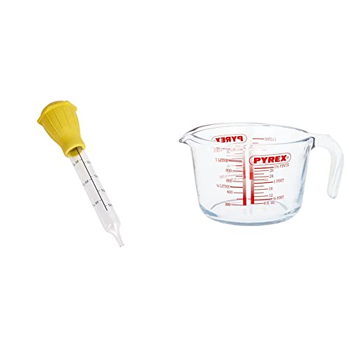 KitchenCraft KCBASTERGL Traditional Baster, Glass/Rubber, 30 cm, Yellow & Clear & Pyrex Glass Measuring Jug, Transparent, 1 Litre