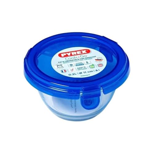 Pyrex Cook & Go Round Glass Box with Lid 0.2 L / 11 cm Diameter for Cooking in The Oven, Preserve and Take Away