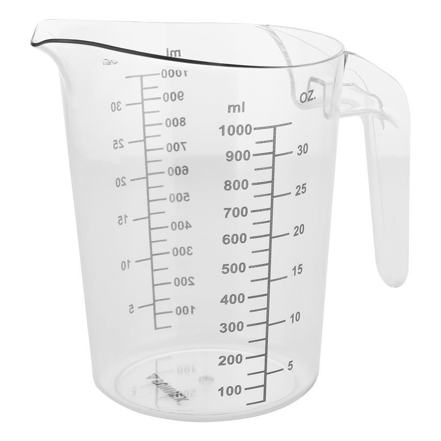 Angled Measuring Jug 1L, Clear BPA Free Plastic Jug with Handle