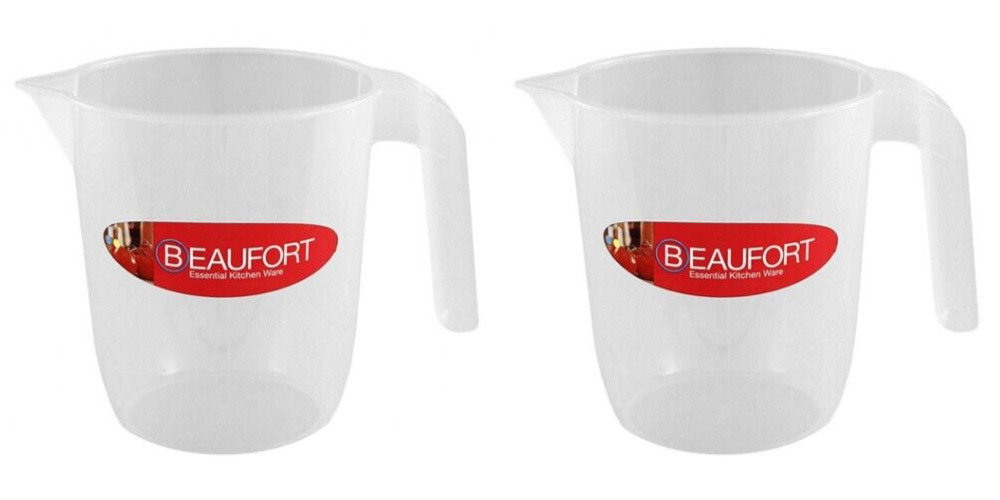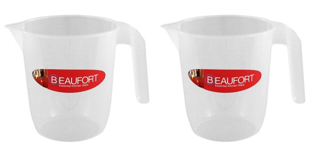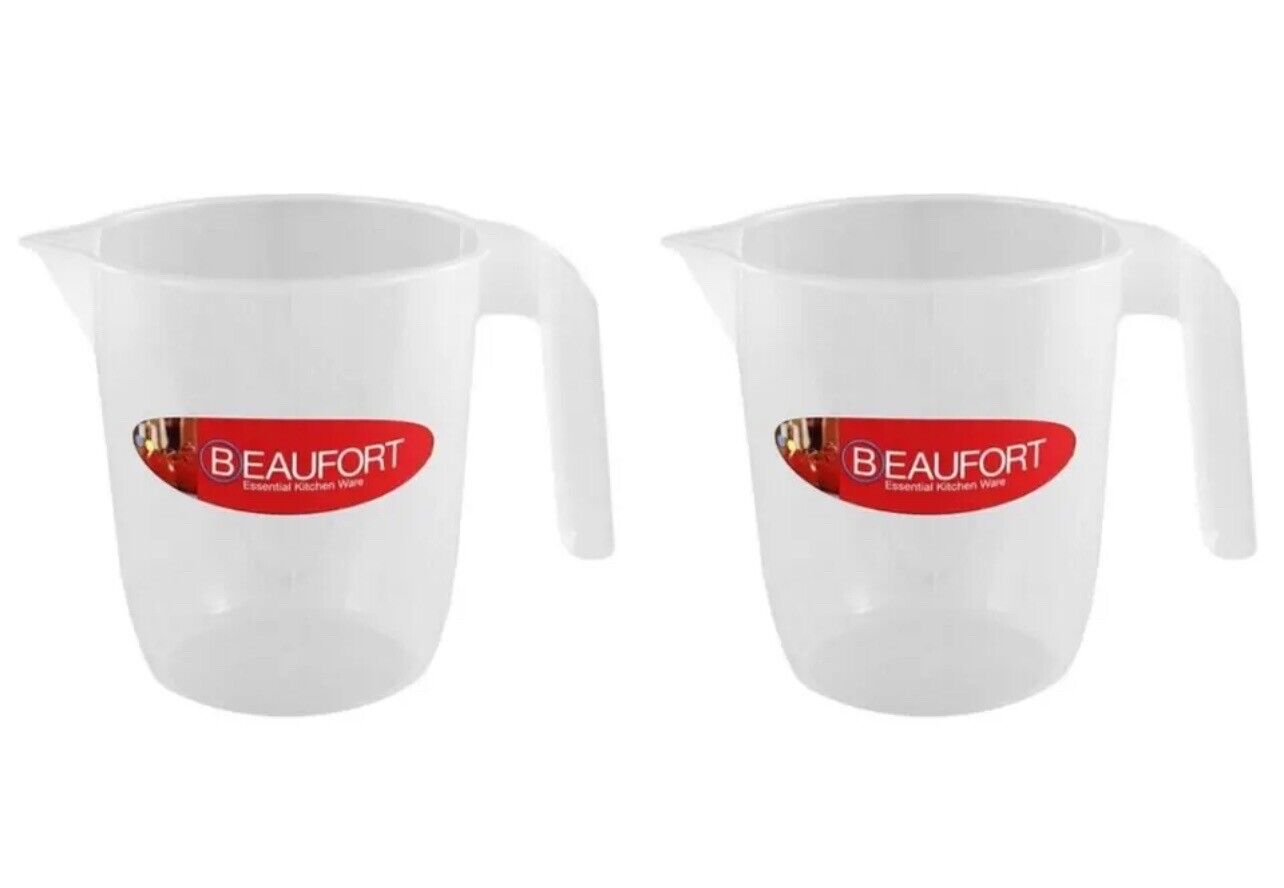 2x Beaufort Kitchen Cooking Baking Plastic Measuring Jug with Handle 1L - Clear