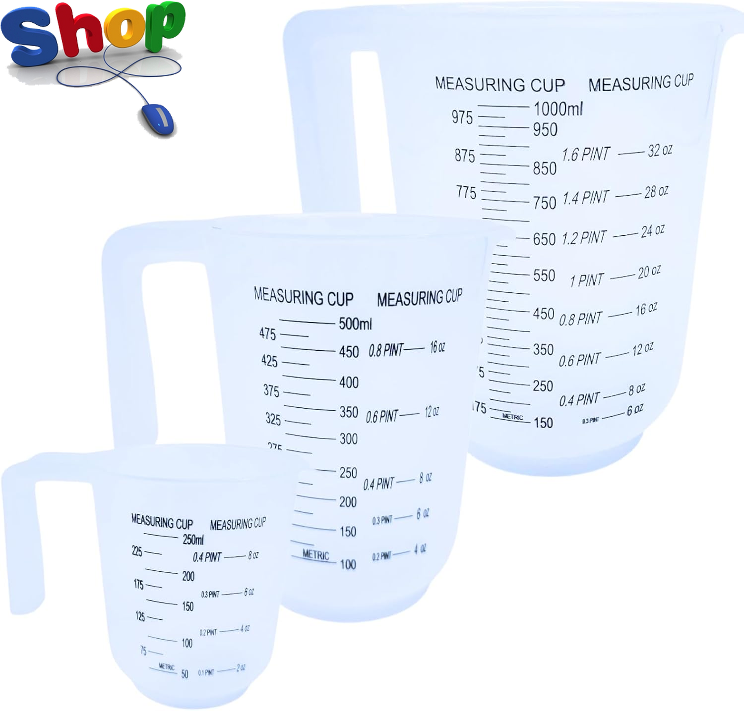 Measuring Jugs Set of 3 – 1L, 500Ml & 250Ml – Kitchen Measuring Jug for Cooking