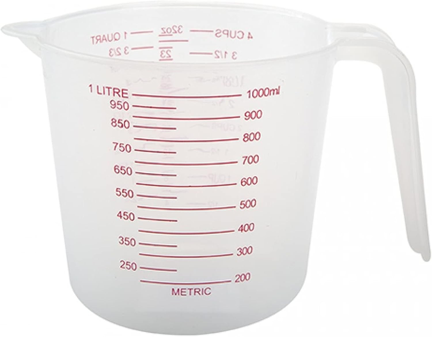 1L Plastic Measuring Jug with Clear Measurements displayed in ml, cl, fl oz and