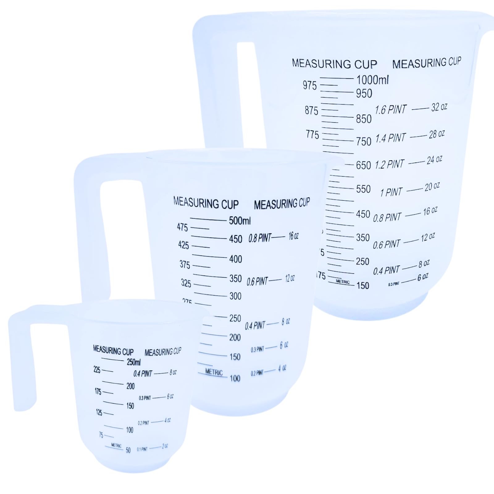 Measuring Jugs Set of 3 – 1L, 500ml & 250ml – Kitchen Measuring Jug for Coo