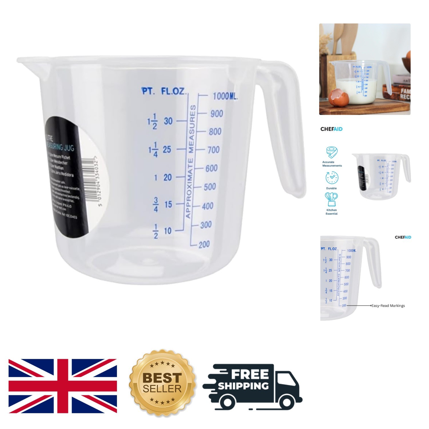 1L Clear Plastic Measuring Jug with Measurements displayed in ml, cl, fl oz and
