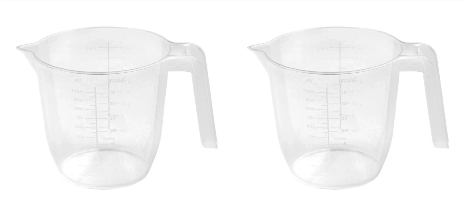 2 x Whitefurze 1L Clear Plastic Measuring Jug – Kitchen Use, Measure All Liquids
