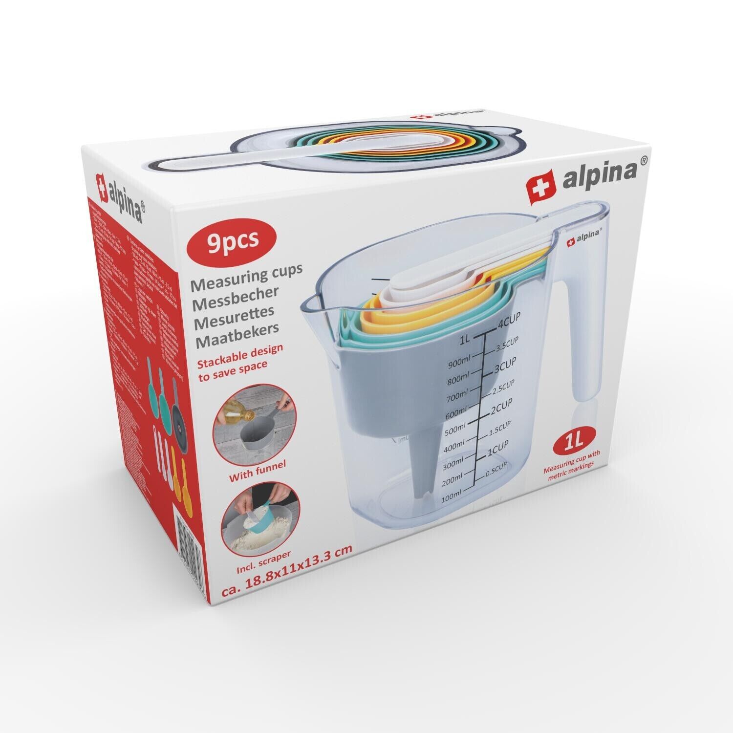 1L Measuring Jug Cups Spoons Set 9 Pieces Stackable Baking Cooking Set Funnel