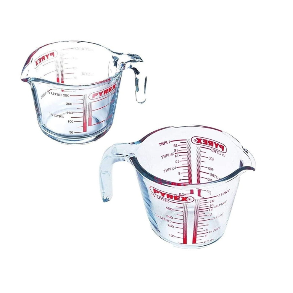 0.25L and 0.5L Pyrex Glass Measuring Jug Set Kitchen Prep Measurement