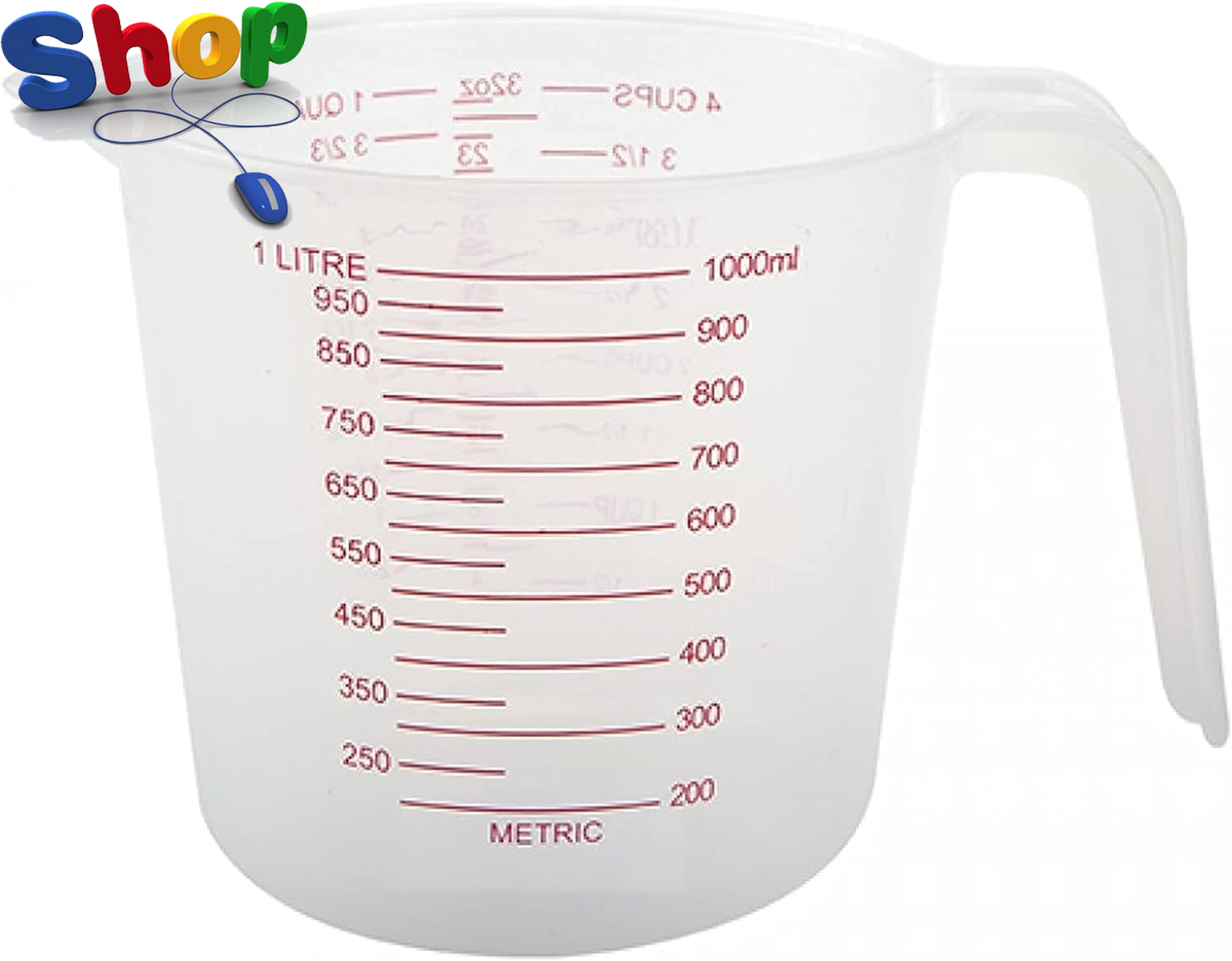 1L Clear Plastic Measuring Jug with Measurements Displayed in Ml, Cl, Fl Oz and