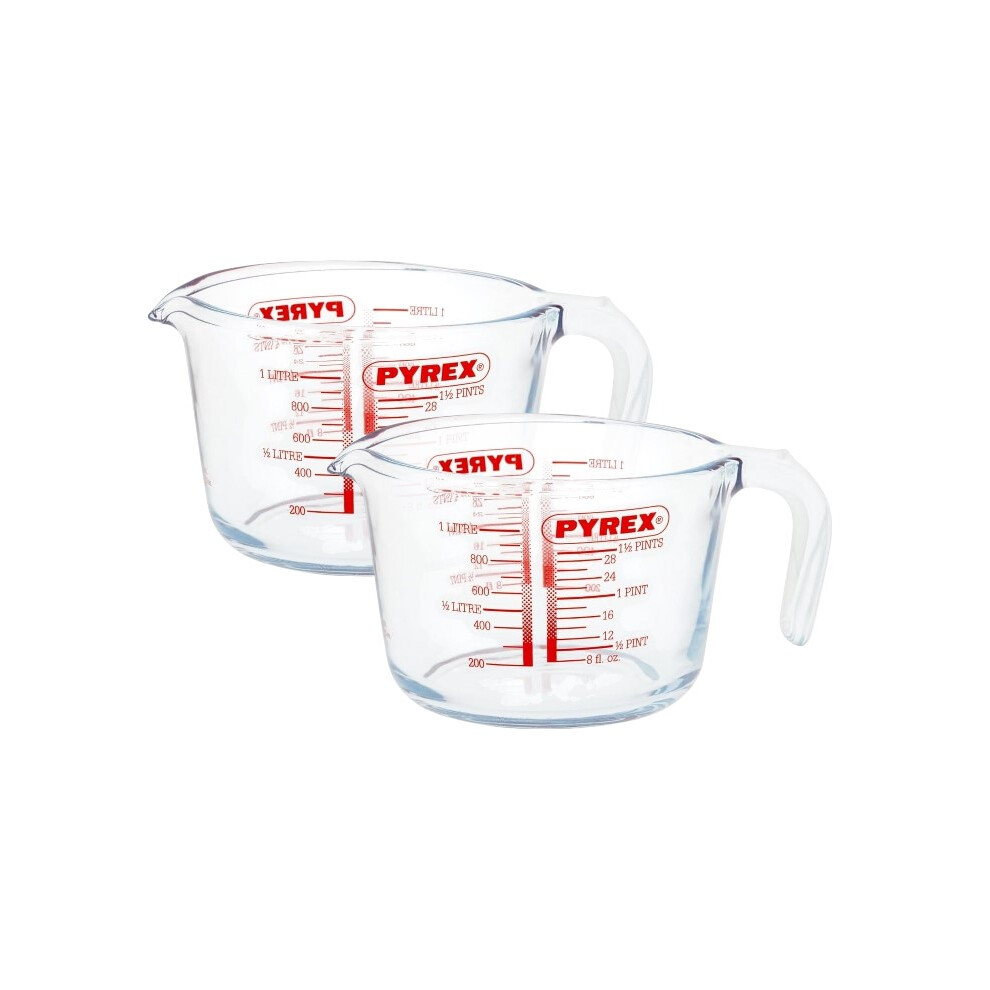 2x Pyrex Large Glass Measuring Jug 1000ml Classic Kitchen Measurement