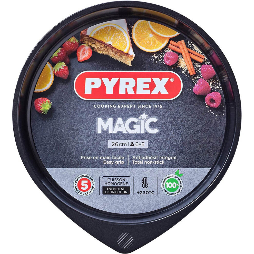 Pyrex Magic Metal Cake Pan Non Stick Coating Easy Grip 26cm Black