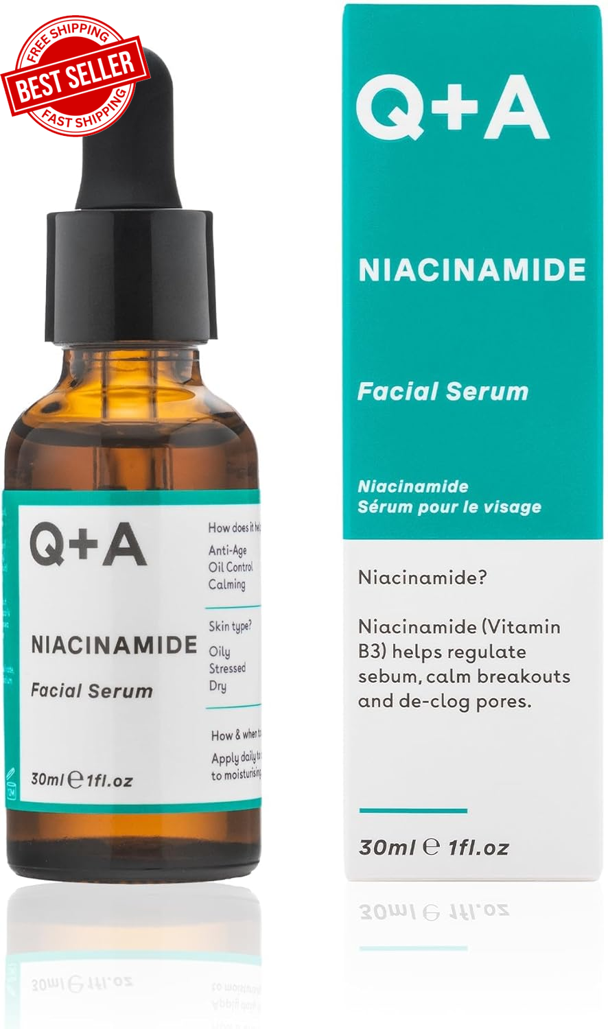 Q+A Skincare Heroes Gift Set, Contains Hyaluronic Acid Hydrating Cleanser 75ml, Vitamin C Brightening Serum 30ml, Ceramide Face Cream 50g, and Niacinamide Daily Toner 100ml