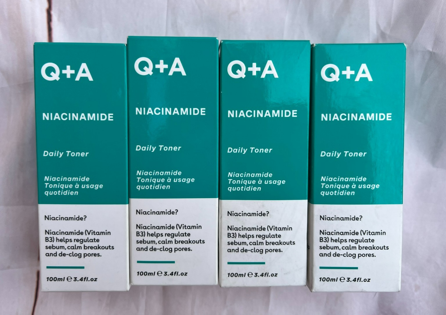 Q+A 4x 100ml Niacinamide Daily Toner, helps calm breakouts and de-clog pores