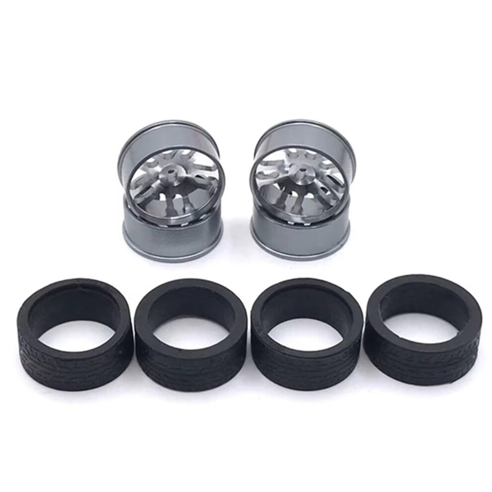 RC Car Wheels and Tires 1/28 Scale Metal Rim Rubber Set for Wltoys MiniZ MiniQ Enhanced Grip
