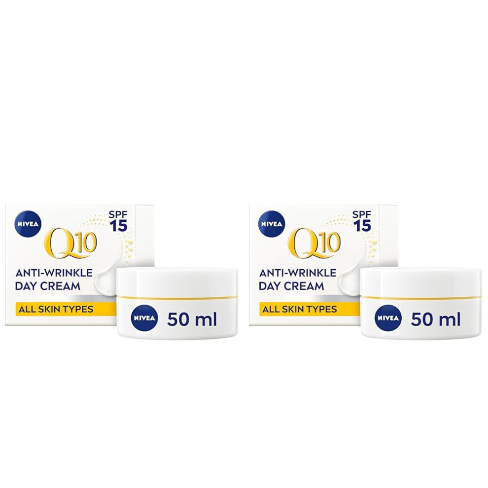 NIVEA Q10 Anti-Wrinkle Power Firming Day Cream SPF 15 (50ml), Anti-Wrinkle Face Cream Identical Q10 and Creatine, Face Cream for Wrinkles (Pack of 2)