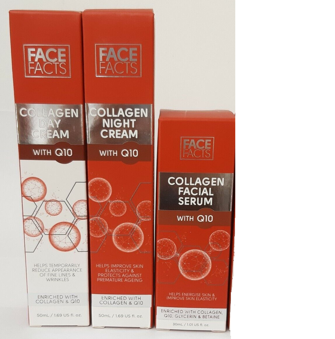 Anti Ageing Face Facts Collagen Facial Serum Day Cream Night Cream with Q10 SET
