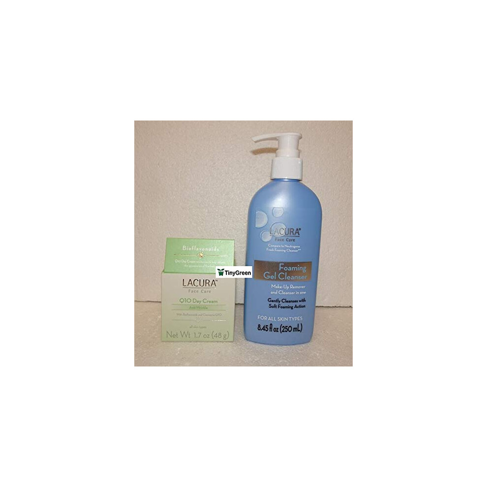 Lacura Anti-Wrinkle Face Q10 Day Cream 1.7oz and Face Care Foaming Gel Cleanser 8.45fl oz (Pack of Two)