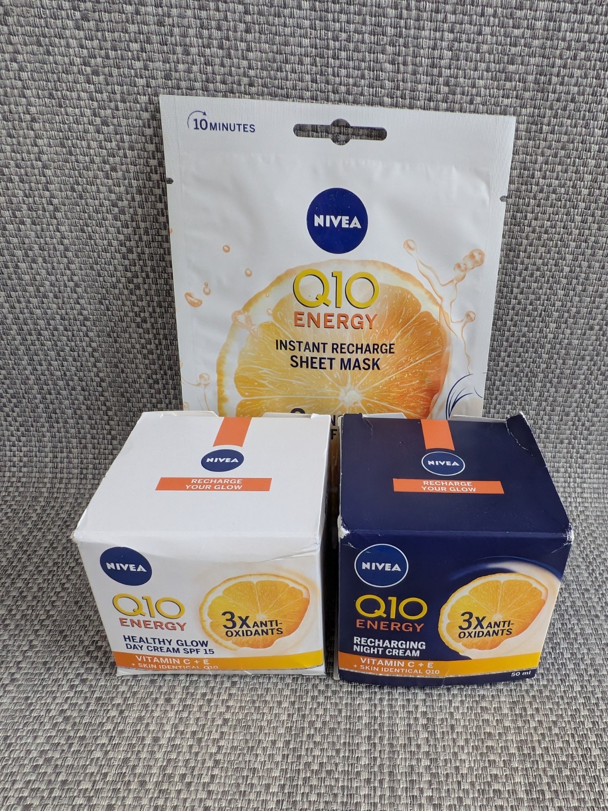 Nivea Q10 Energy Glow & Recharge 50ml Day Cream, 50ml Night Cream & Sheet Mask