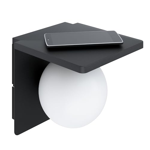 Eglo Ciglie Wall Light, 1-Bulb Wall Light, Material: die-cast Aluminium, Colour: Black, Glass: Opal matt, White, Includes QI Charger (Wireless Charging), Socket: E14