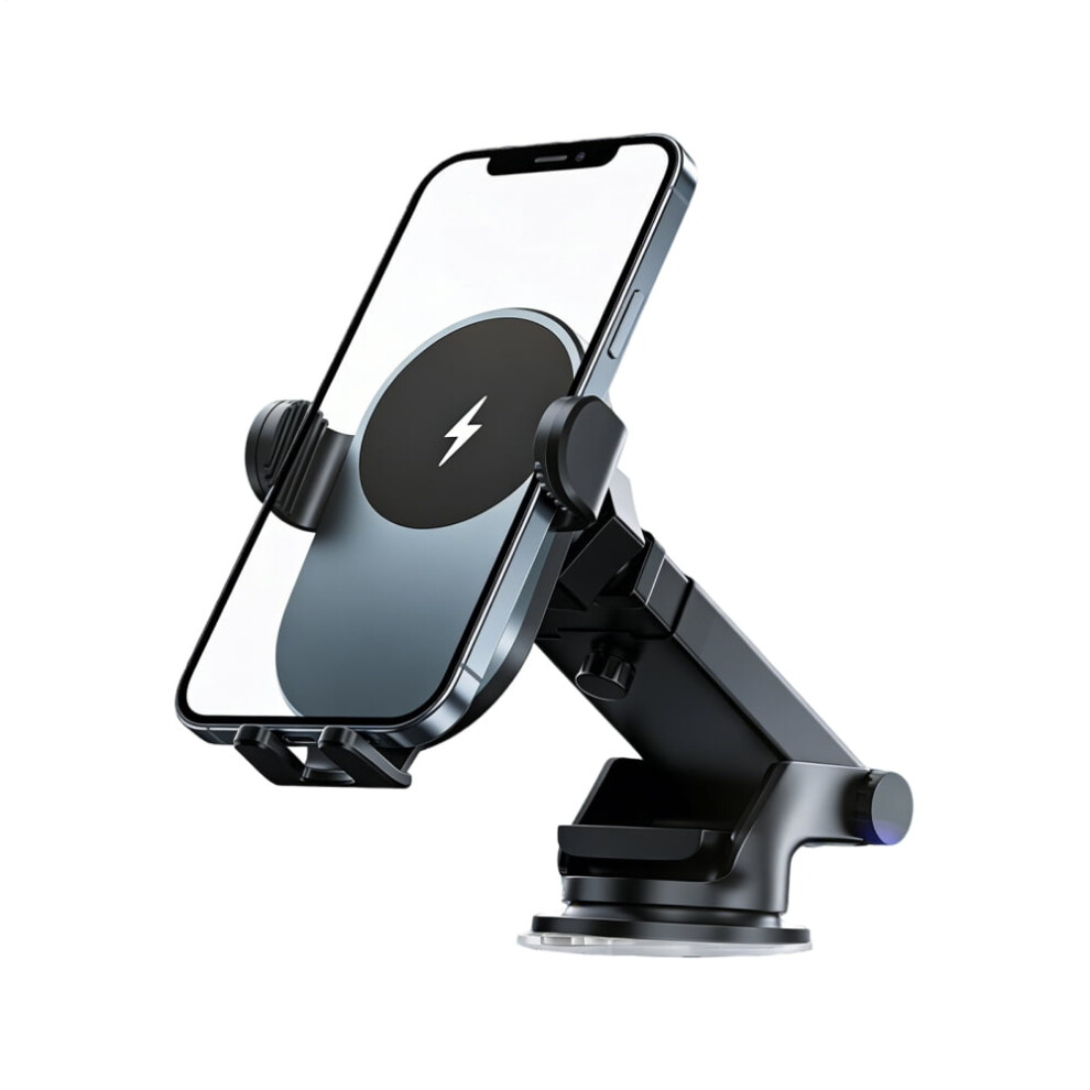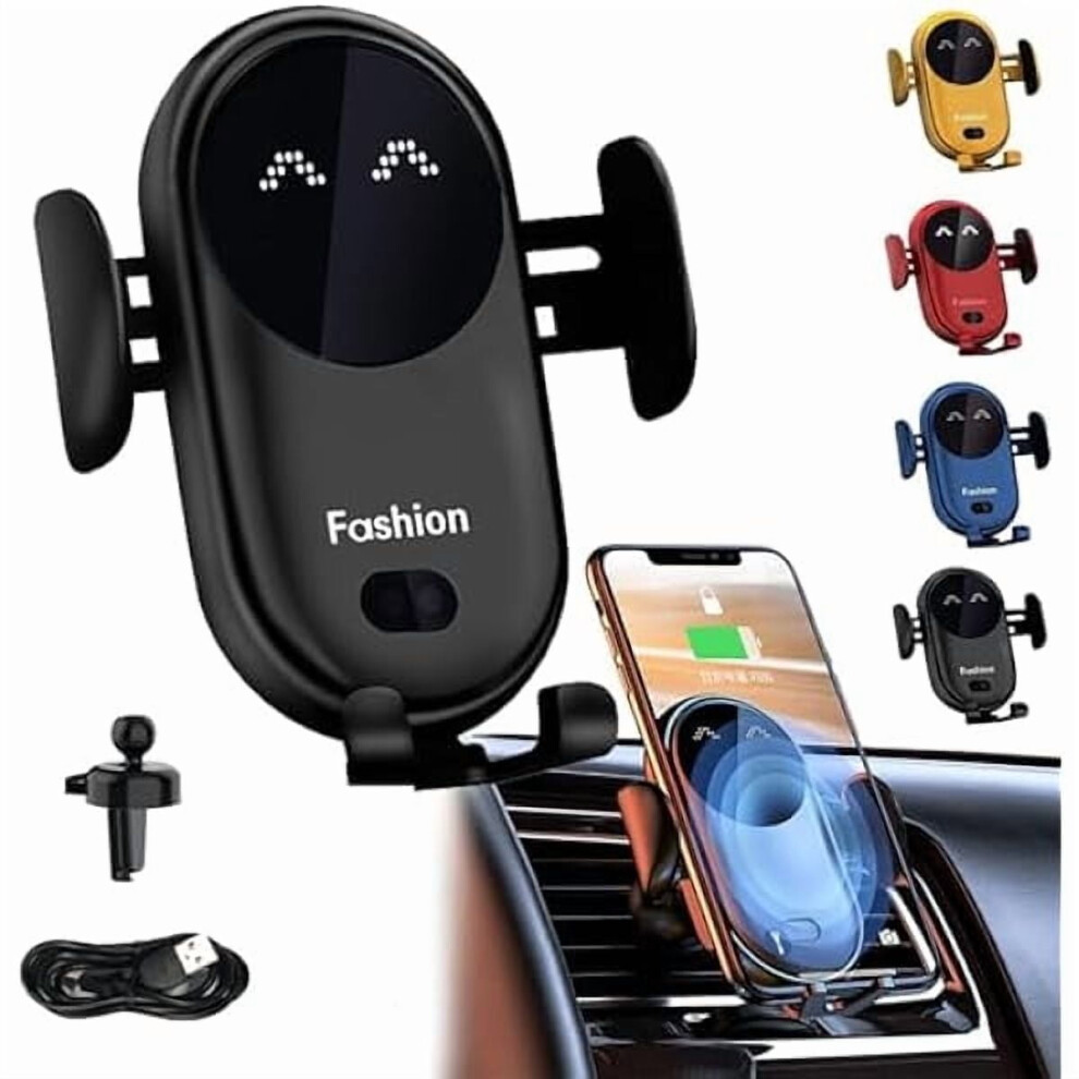 (Black) Dual Mode Wireless Car Charger with Automatic Clamps, Fast Charging, Adjustable View, Compatible with Qi Phones