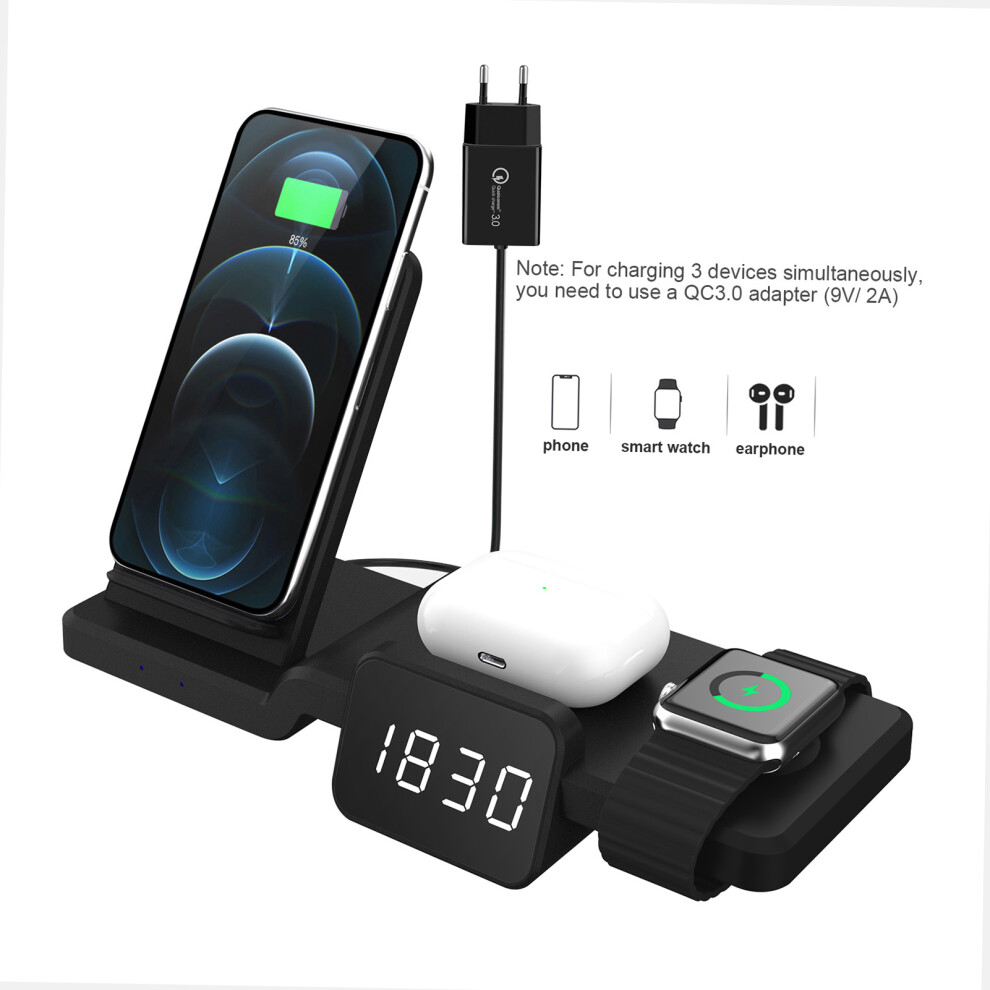 3 in 1 Wireless Charger Stand with Clock for Multiple Devices Charging Compatible with Android and iOS Phones Qi Wireless Charging Station
