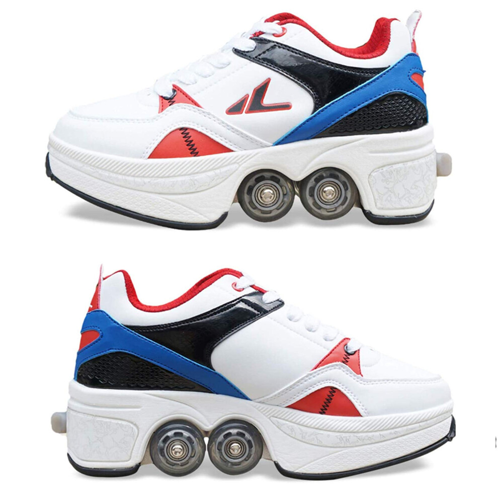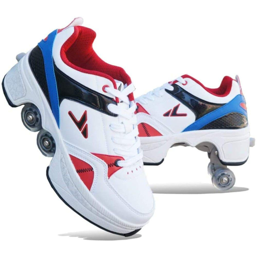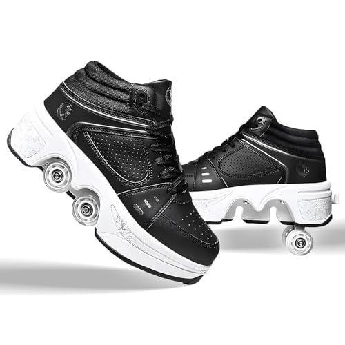 Rollerskates womens,Quad Kick Roller Skates for kids,LED Inline Skates Deformation Trainers for Adults Beginners,Sneakers with Invisible Wheel for boys (A, UK-6.5)