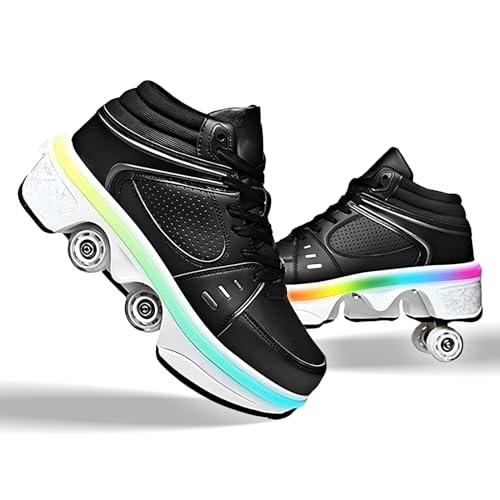 Rollerskates womens,Quad Kick Roller Skates for kids,LED Inline Skates Deformation Trainers for Adults Beginners,Sneakers with Invisible Wheel for boys (E, UK-6.5)