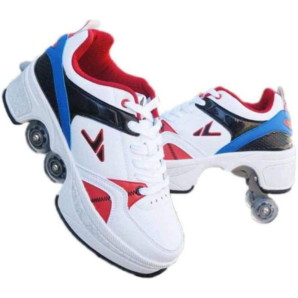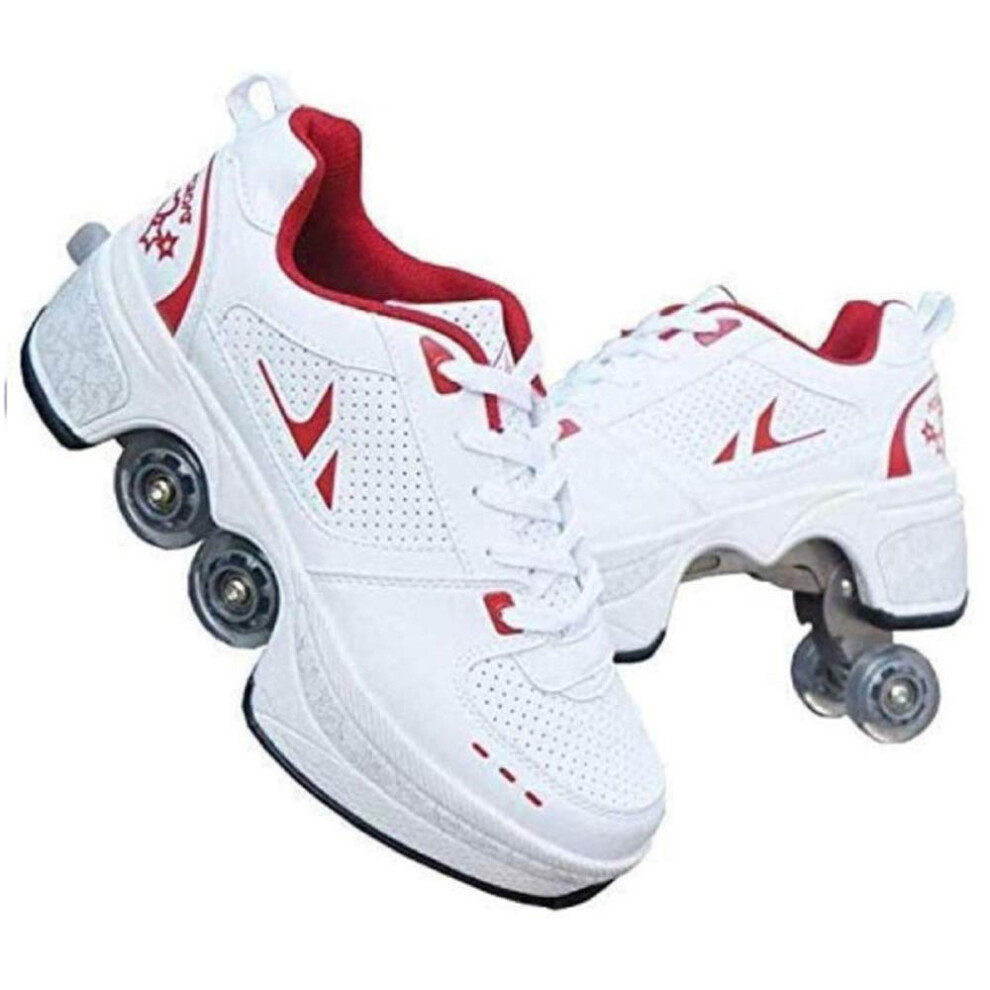 Multifunctional Deformation Shoes Quad Skate Roller Skates for Adults and Children, Red Color, Size 40, Outdoor Sports