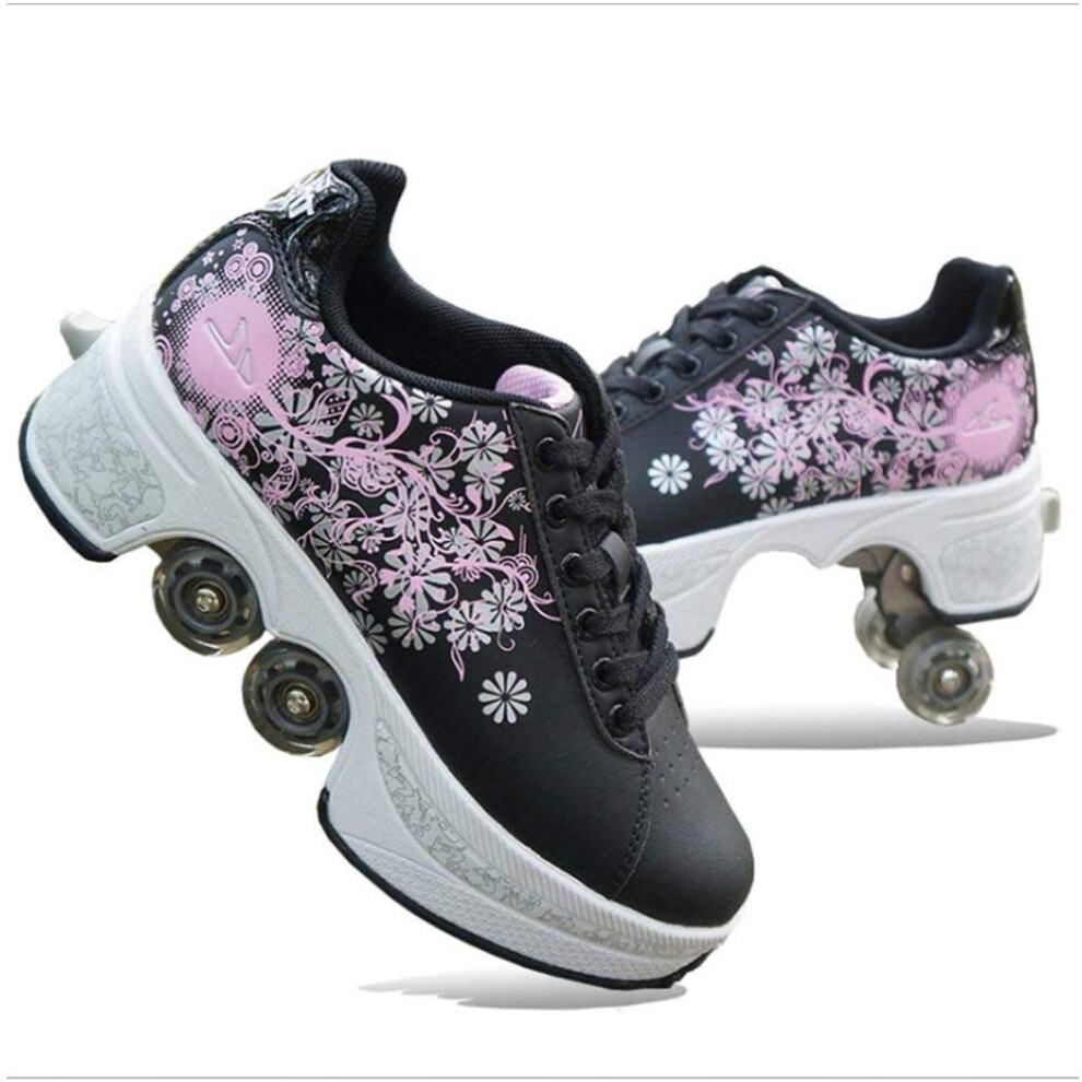 Rollerskates womens,Quad Kick Roller Skates for kids,LED Inline Skates Deformation Trainers for Adults Beginners,Sneakers with Invisible Wheel for boys (E, UK-5)