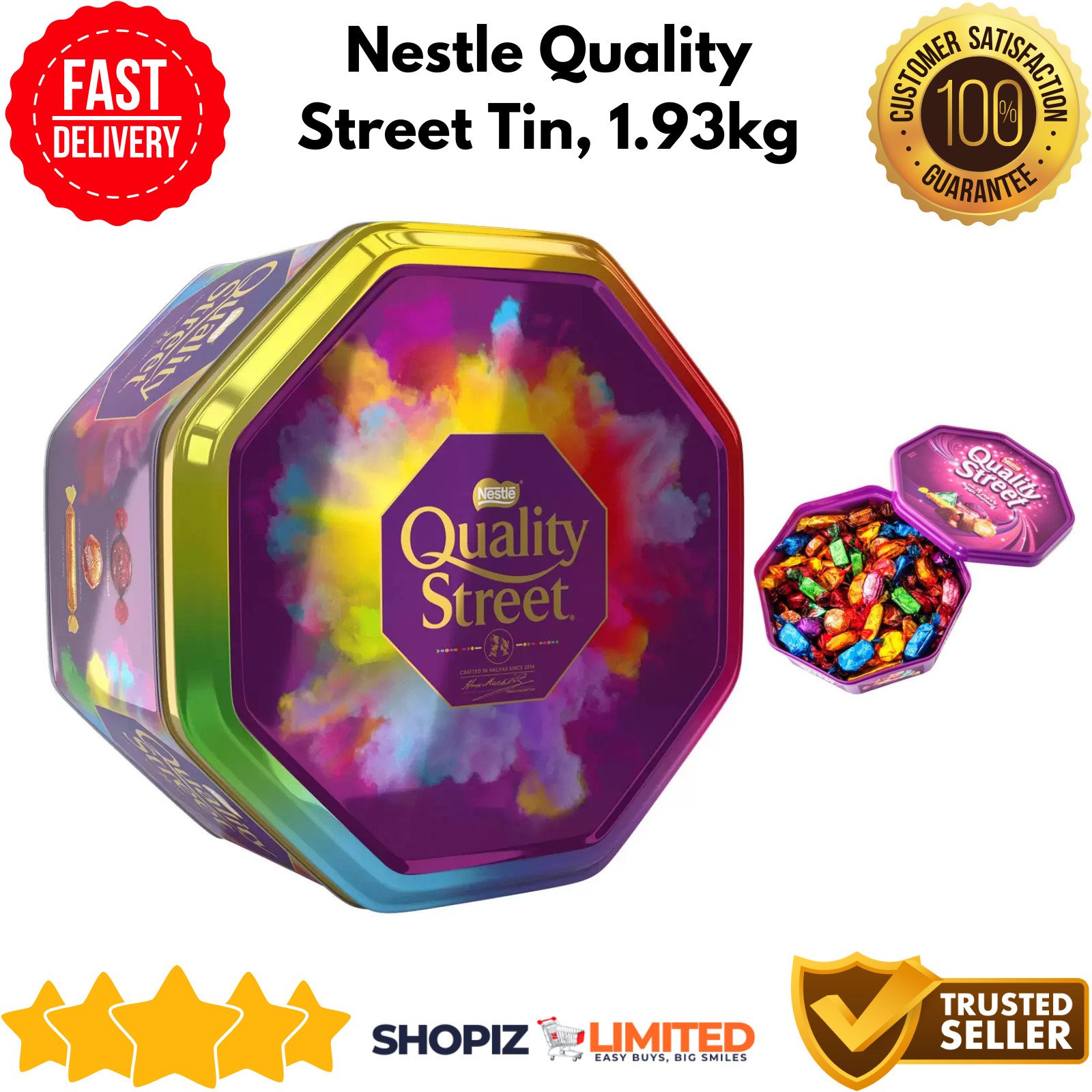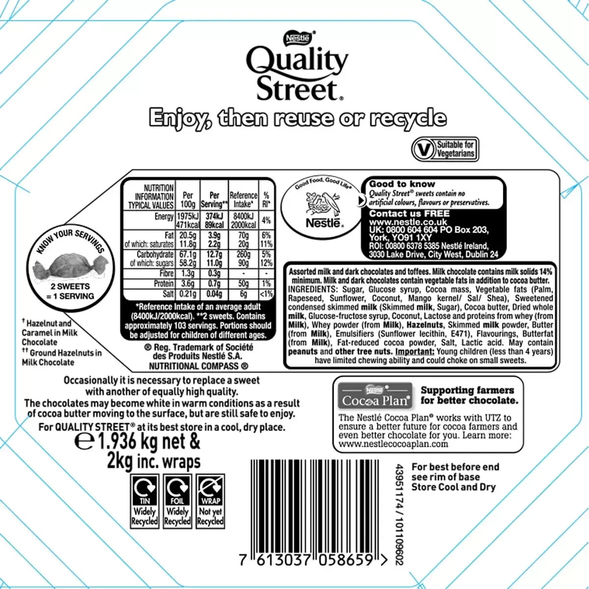 Nestle Quality Street Individually Wrapped Milk Dark Chocolate Toffee Tin 1.93kg