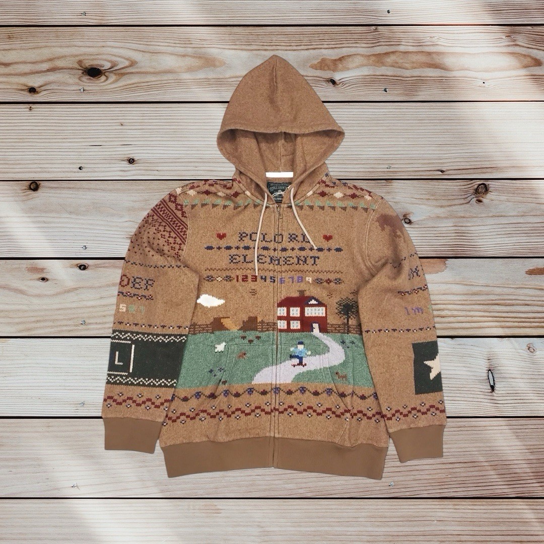 Polo Ralph Lauren X Element Zip Up Hoodie Jumper Brown Multi RARE 2XL XXL 3XL