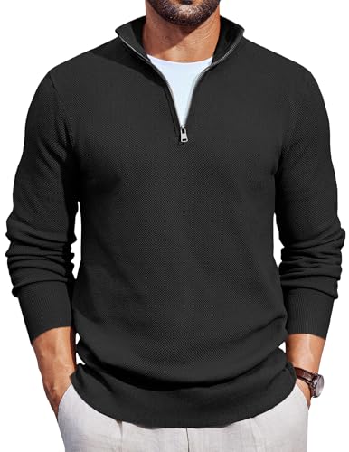 COOFANDY Men's Quarter Zip Jumper Polo Neck Jumpers Half Zip Sweatshirts Golf Jumpers for Men Turtle Neck Jumper Winter Sweater Black L