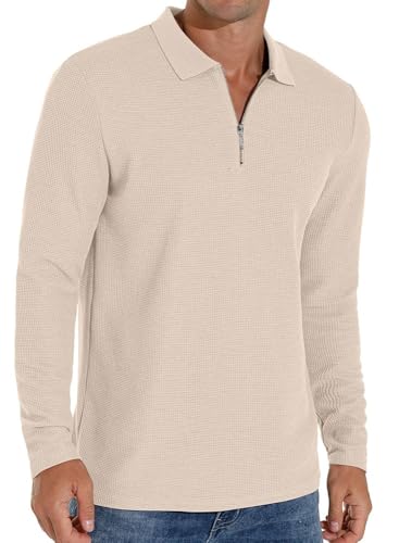 Sailwind Polo Shirts for Men Waffle Long Sleeve Tops Quarter Zip Polo Shirts Casual Men's T-Shirts (Khaki, XXL)
