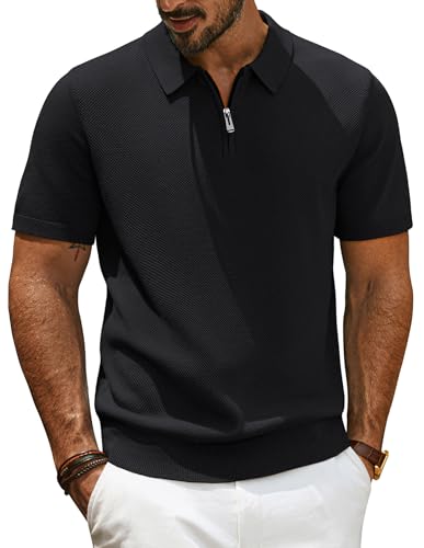Sailwind Polo Shirts for Men Waffle Long Sleeve Tops Quarter Zip Polo Shirts Casual Men's T-Shirts (Black, XL)