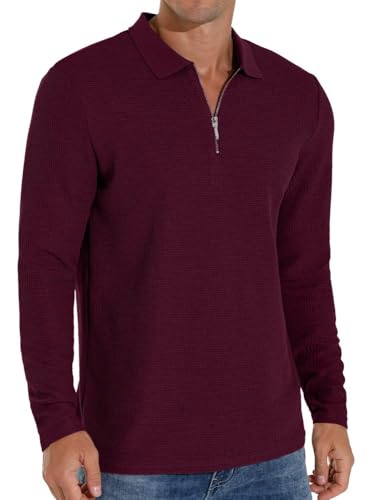 Sailwind Polo Shirts for Men Waffle Long Sleeve Tops Quarter Zip Polo Shirts Casual Men's T-Shirts (Wine Red, XL)