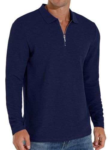 Sailwind Polo Shirts for Men Waffle Long Sleeve Tops Quarter Zip Polo Shirts Casual Men's T-Shirts (Navy Blue, S)