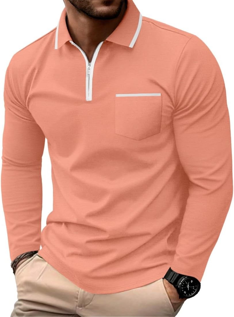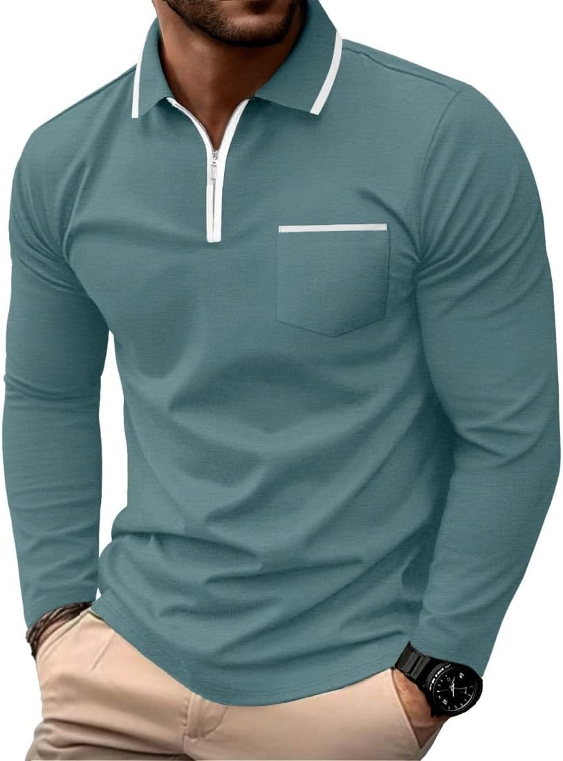 PrinStory Mens Long Sleeve Polo Shirts Quarter Zip Polo Shirts Golf Tennis Tops