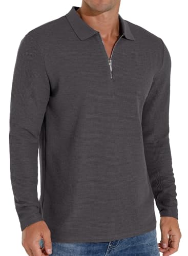 Sailwind Polo Shirts for Men Waffle Long Sleeve Tops Quarter Zip Polo Shirts Casual Men's T-Shirts (Dark Grey, M)