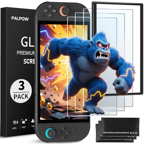 PALPOW 3-Pack Screen Protector for Nintendo Switch 2 with Auto-Alignment 2025,Anti-Blue Light Tempered Glass Matte Screen Protector,Anti-Dust, 25 seconds Installation,Anti-Bubble,Ultra-Clear