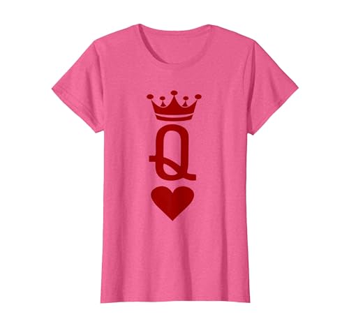 Queen of Hearts Card Game Lover Dice Game Lover Card Symbols T-Shirt, Women, Pink Heather, Small