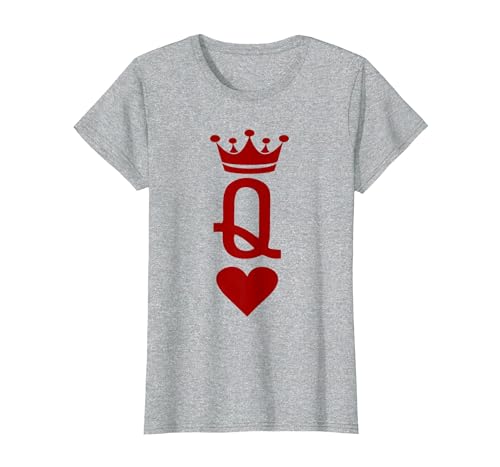 Queen of Hearts Card Game Lover Dice Game Lover Card Symbols T-Shirt, Women, Heather Grey, X-Small