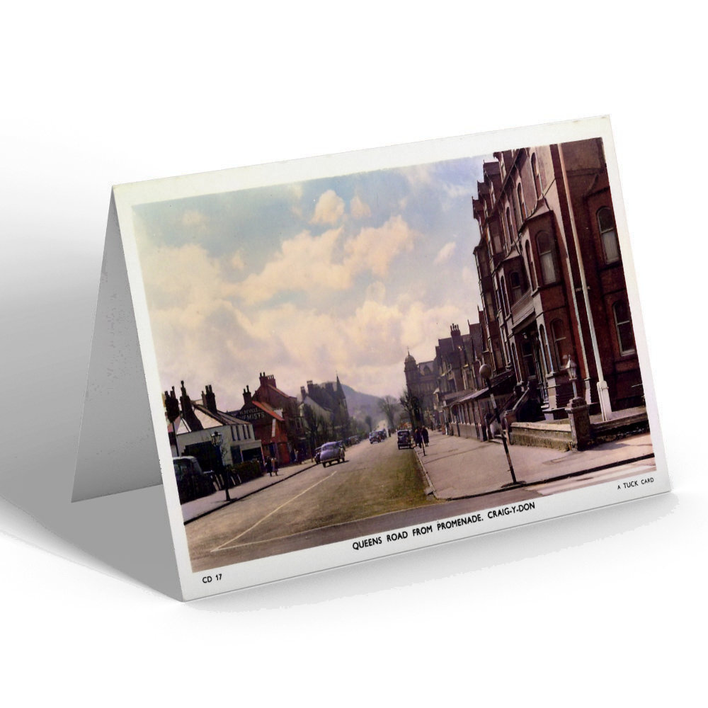 GREETING CARD - Vintage Wales - Queens Road from Promenade, Craig-y-Don (b)